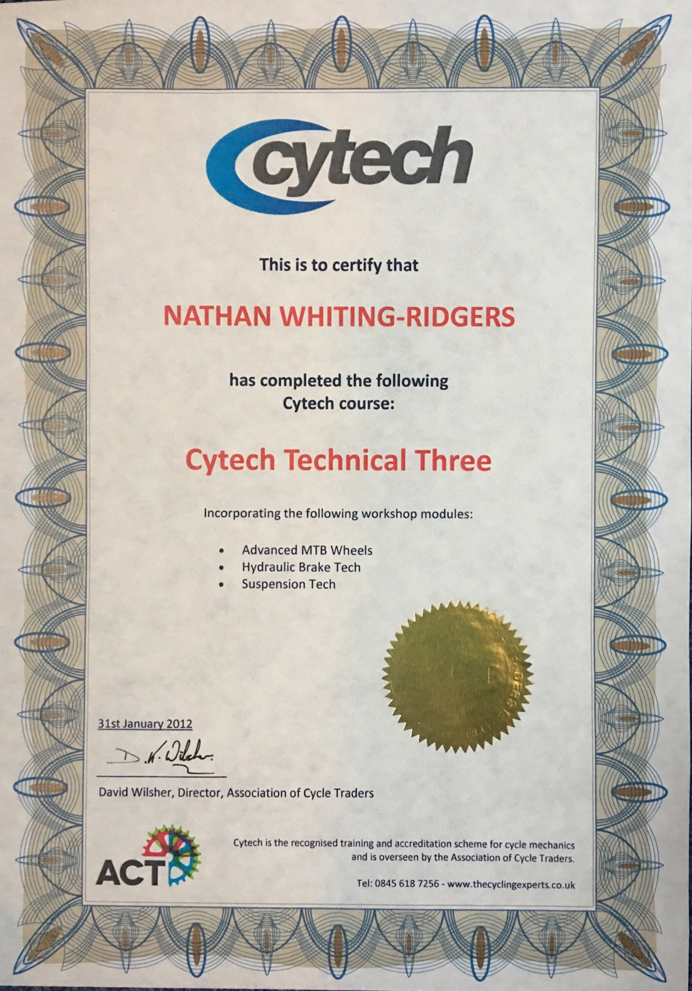 Every day is a learning day in the Bicycle industry and with the experience and knowledge I hold. New products come along every day to test us. Not only do we learn our skills on the job or via training to the highest level. Experience isn’t tought in the class room. It’s always doing the job right and satisfying the customer.